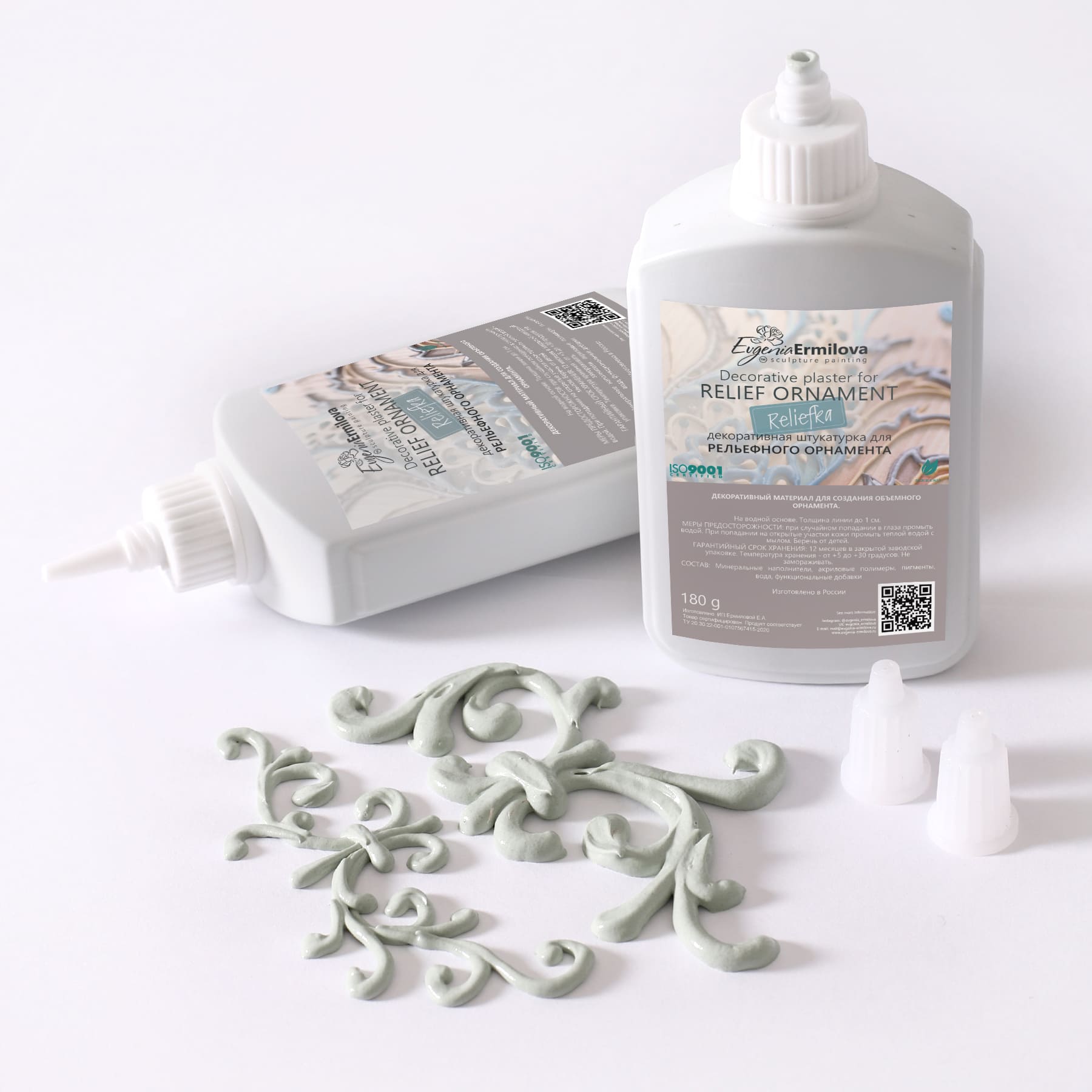 Reliefka "Sage" is a decorative plaster specially designed for relief painting. Allows you to create a three-dimensional ornament, with a thickness of 3 to 10 mm.
